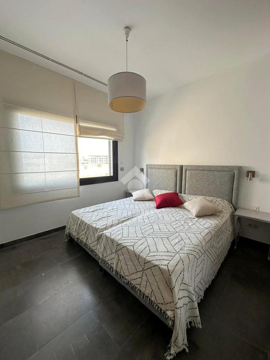Cet appartement se compose d’un salon lumineux qui s’ouvre sur un balcon, ainsi qu’une cuisine moderne équipée ouverte sur un séchoir.